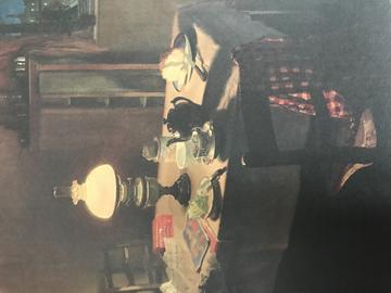 There on the table is a nice bright oil lamp, a half-read newspaper, an open can of fruit, a bright red box of digestive biscuits, a cottage loaf half-eaten and a betty brown teapot and period-typical tea cup and saucer – quite possibly Clarice Cliff. It’s an affectionate painting but it is also a pictorial rendering of Virginia Woolf’s A Room of One's Own, a study in female emancipation.